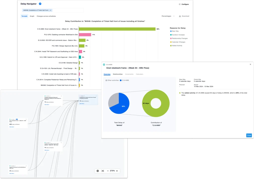 Delay Navigator explains why milestones slipped and which activities drove the delay.