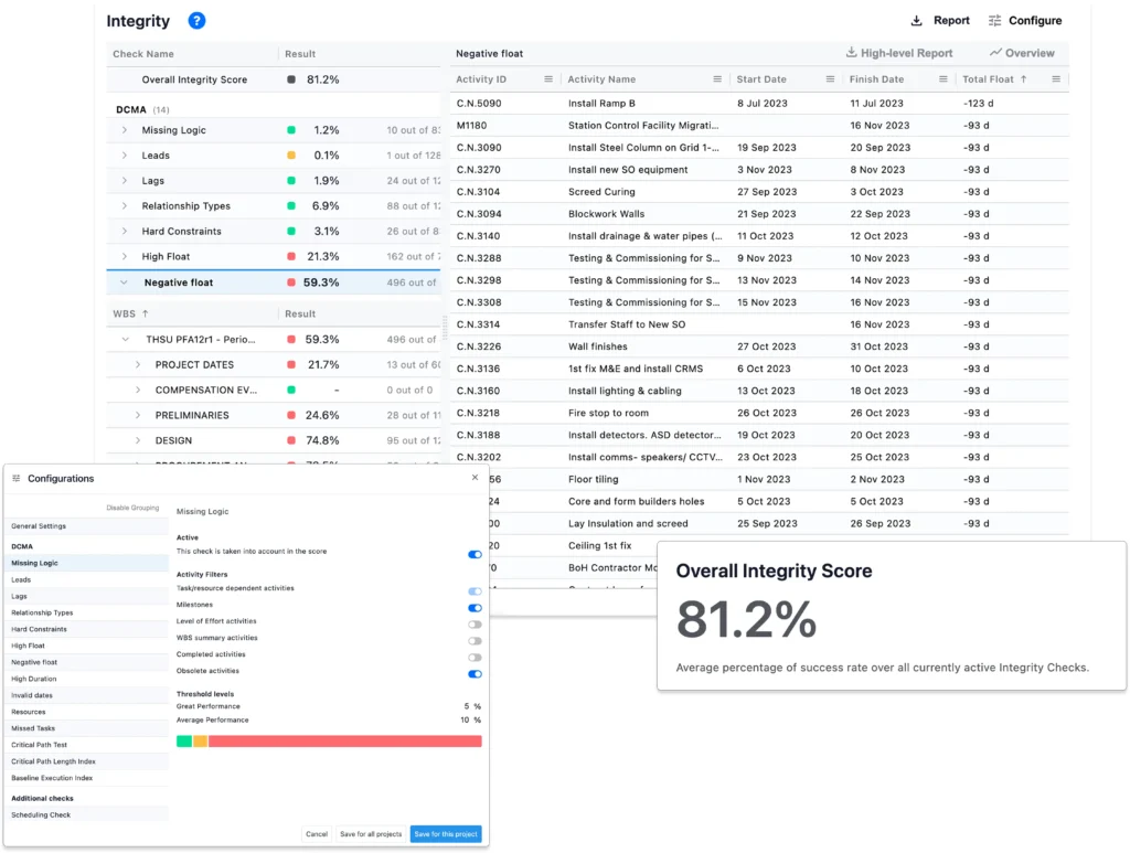 - It highlights logic issues, risky calendars, out of sequence work, and constraint usage so teams can quickly see whether a schedule is fit for purpose.