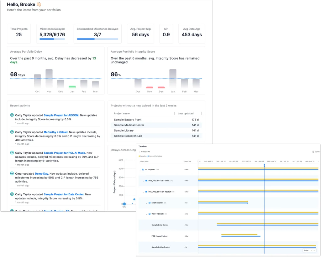 - It surfaces performance metrics such as schedule performance indices, slippage, and compression. This helps you answer, “Are we on track, and if not, how far off are we?”.